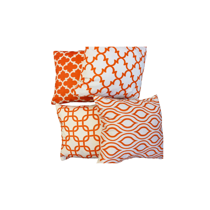 / 14×14 White w/ Orange Symmetrical Design Pillows