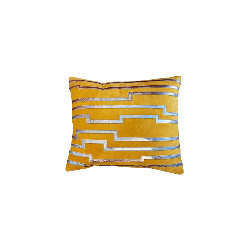 / 18×18 Mustard Yellow Velour w/ Metallic Silver Stripes Pillow