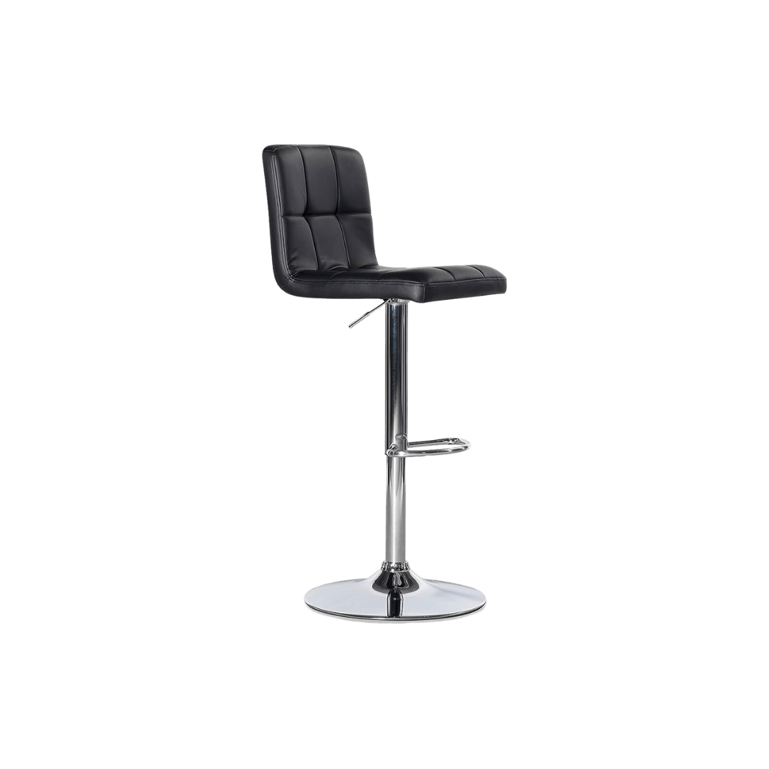 / Black Leather & Silver Chrome Box Stitch Barstool