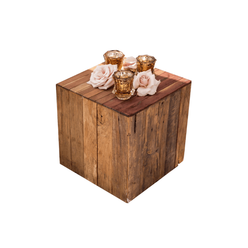 Brown Wood Roost Cube Side Table