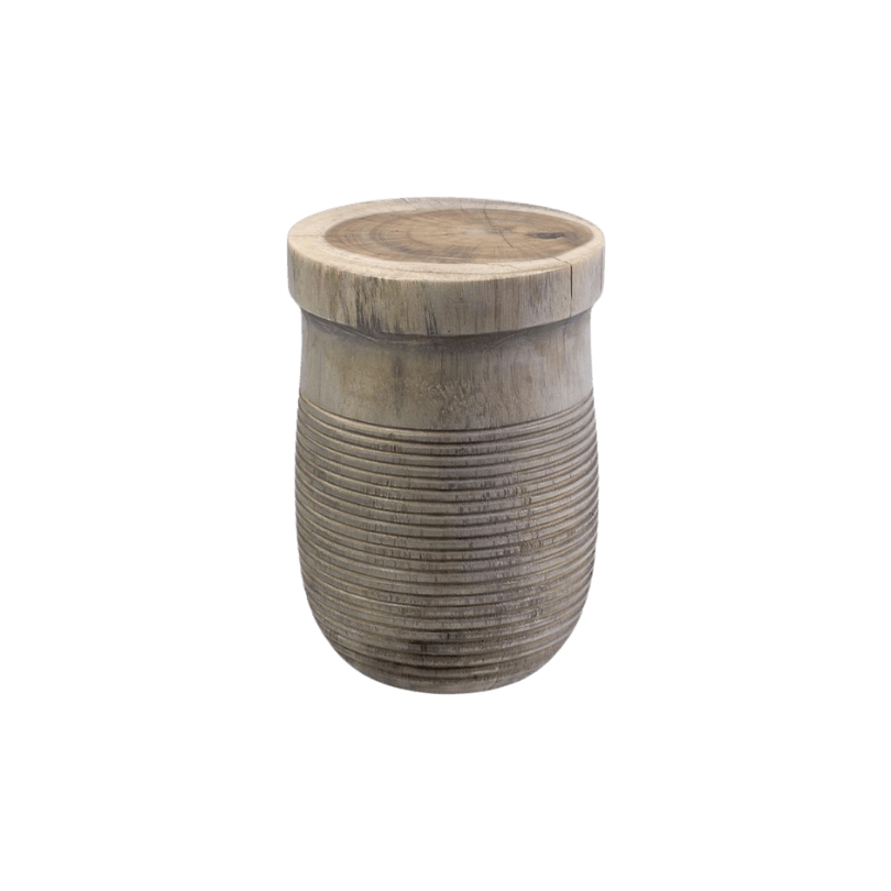 / Grey Wood Drum Side Table
