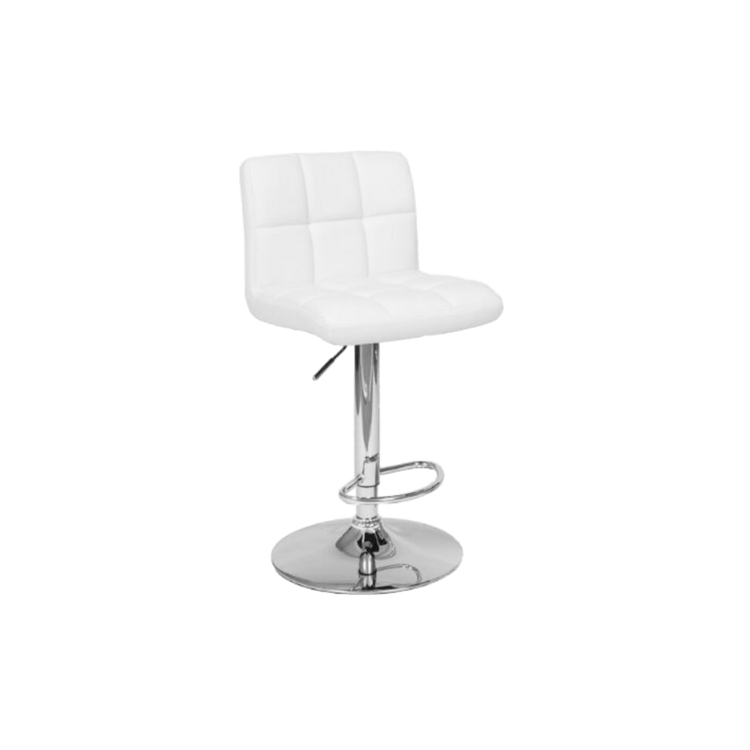 White Leather & Silver Chrome Box Stitch Barstool