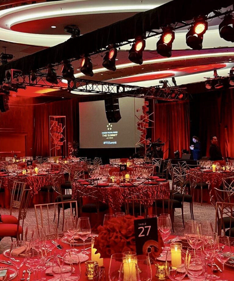 From specialty bar surrounds, LED photo op activations, 30 ft. Hi-Res step & repeat, hundreds of Chameleon Chairs, and more – Destinations By Designs delivered beyond client expectations at the Forbes Travel Guide 2023 Summit in Las Vegas!