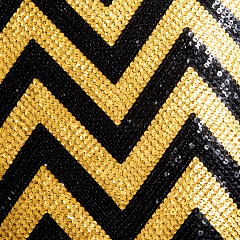 90″x 90″ Black & Gold Sequin Chevron Overlay