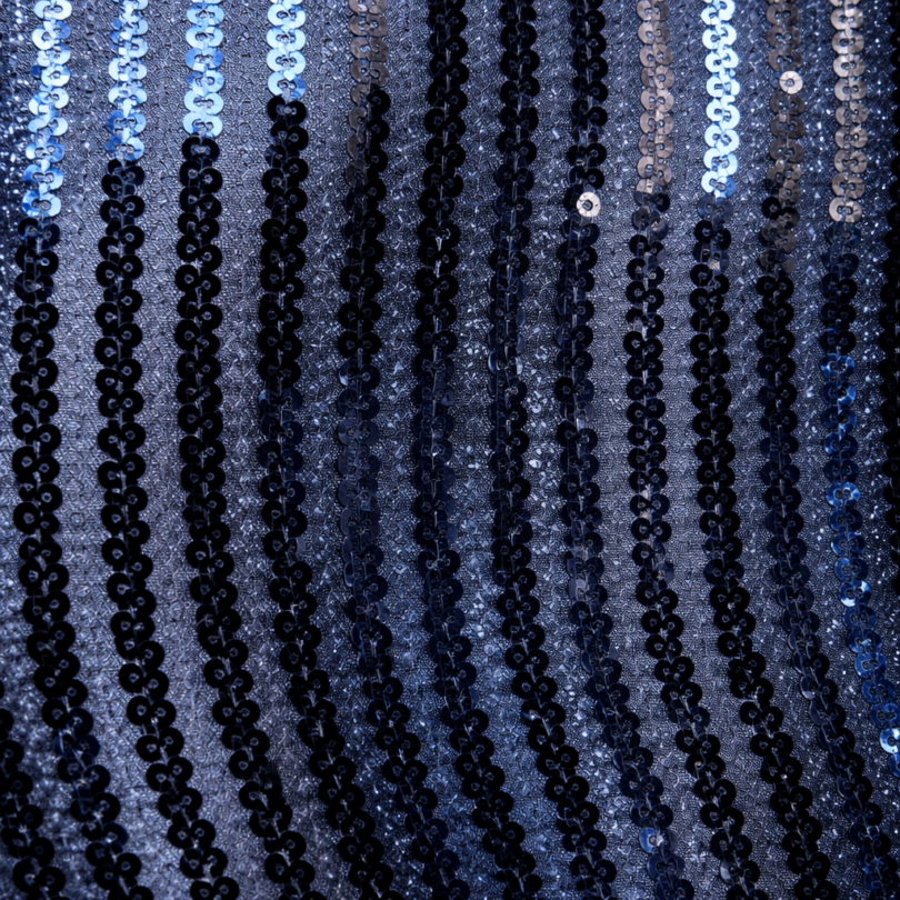 / 90″X90″ Black Sequin Stripes Overlay