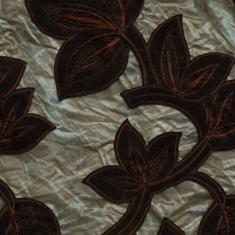 90″X90″ Blue w/Brown Velvet Leaf Taffeta Overlay