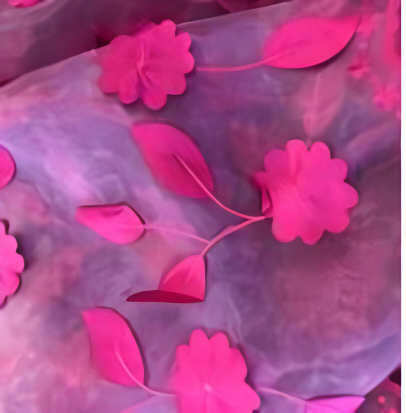 90″X90″ Fuchsia w/Flowers Petals Organza Overlay