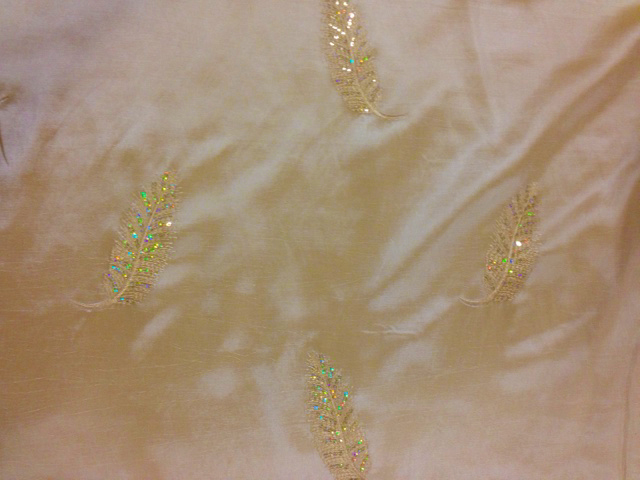 / 90″X90″ Gold w/Embroidered Feathers Taffeta Overlay
