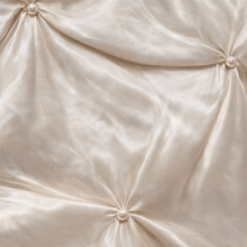 90″X90″ Ivory Pucker w/Pearls Overlay
