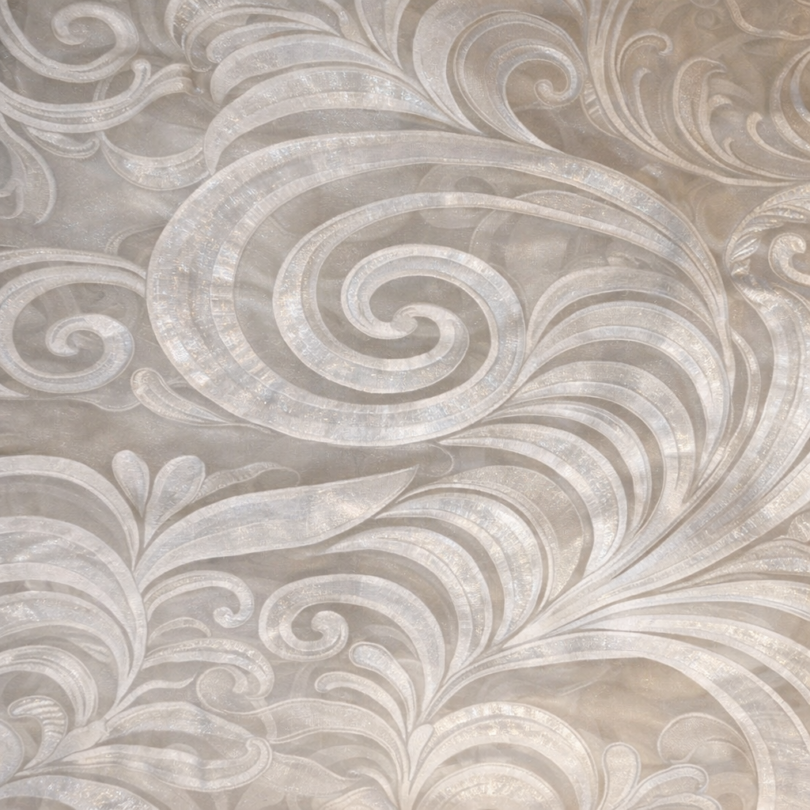 90″X90″ White Embroidered Swirl Overlay