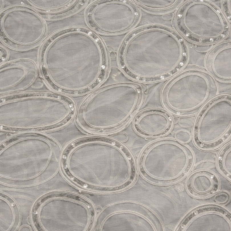 / 90″X90″ White Sequin Ovals Organza Overlay